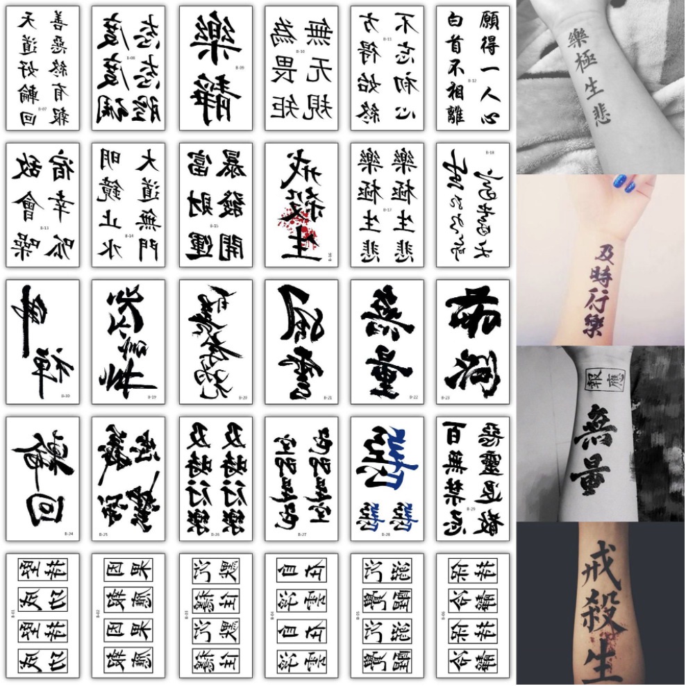30pcs Lot Temporary Chinese Tattoos Set Small Fake Tatoo Boys Black Arm Sleeve Tattoo Sticker Words Shopee Philippines