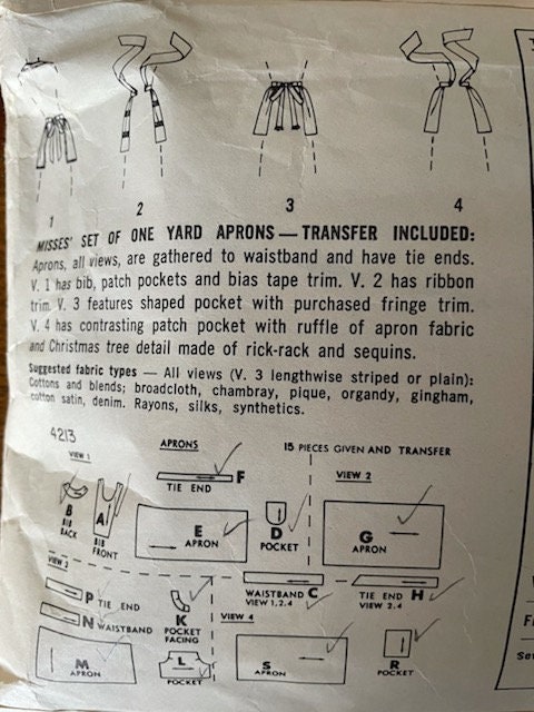 Vintage Simplicity 4123 Apron Sewing Pattern Etsy